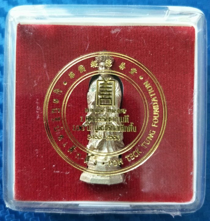 พระกริ่งไต้ฮงกง ปอเต็กตึ้ง มูลนิธิ ครบรอบ 100 ปี เนื้อเงิน พิมพ์ยืนประทานพร เดินทางปลอดภัย โชคลาภ มหามงคล สร้างปี 2553 พร้อมกล่องเดิม