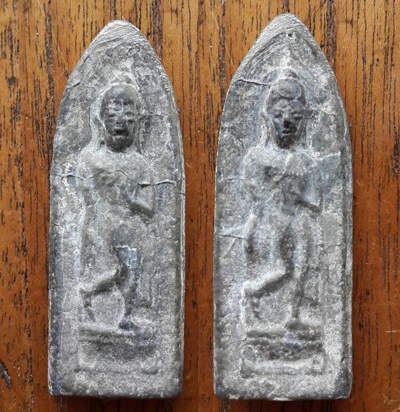 พระหล่อ ปางลีลา เนื้อดีบุก เก่า ไม่ทราบที่ ขนาดสูง 2.5 นิ้ว