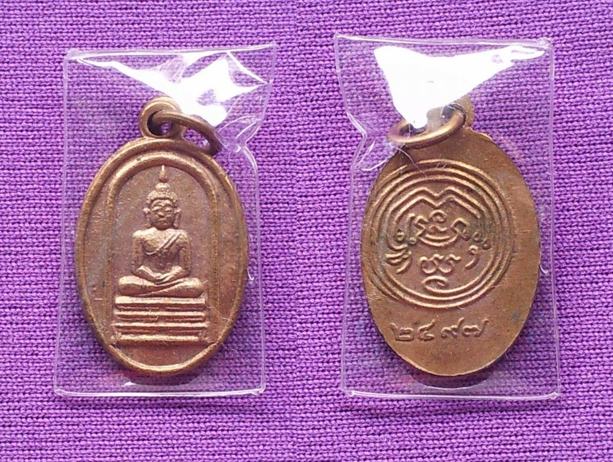 เหรียญพระพุทธ อาจารย์นวม วัดอนงค์ ปี 2497 เนื้อกะหลั่ยทองโบราณ จิ๋วแต่แจ๋ว