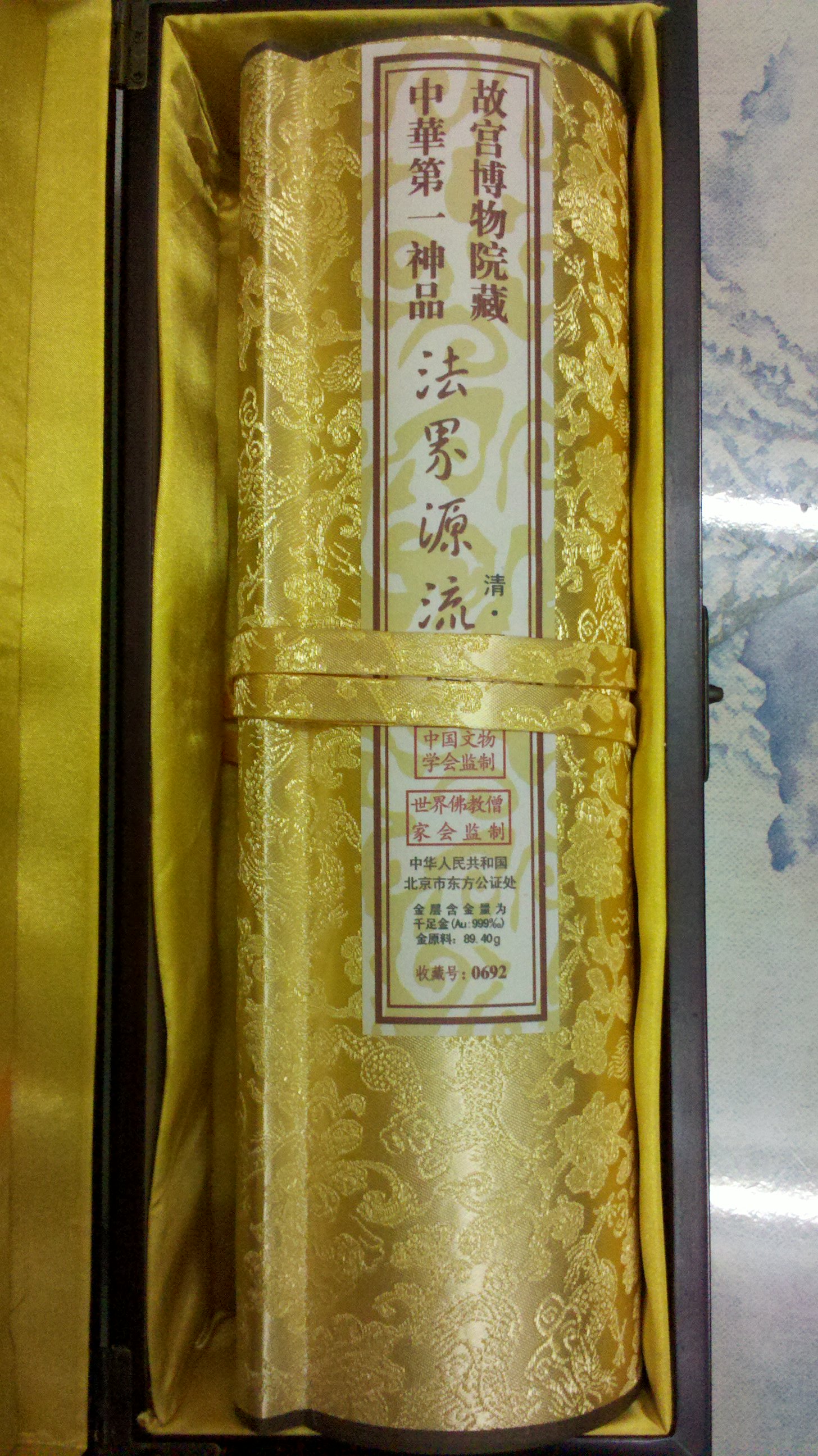 รูปภาพศิลป์โบราณเสริมวาสนาบารมีรูปพระพุทธหนึ่งพันองค์วาดลายทองบนผ้าไหมจีน